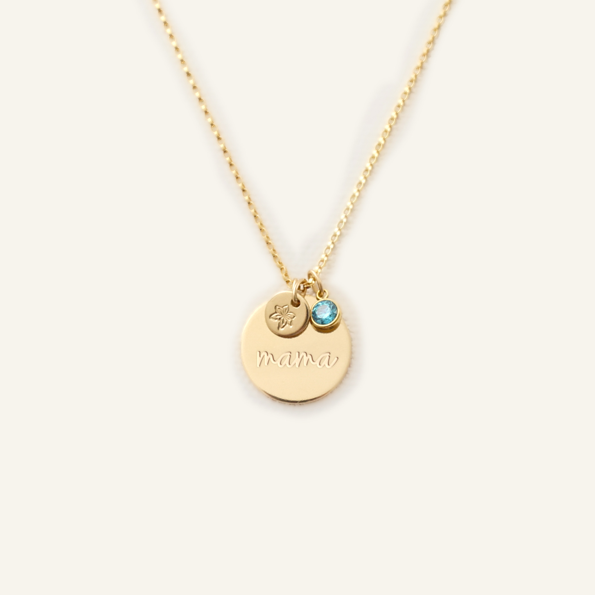 Cursive Mama 5/8″ Disc with Birthstone and 1/4″ Disc Birth Month Necklace