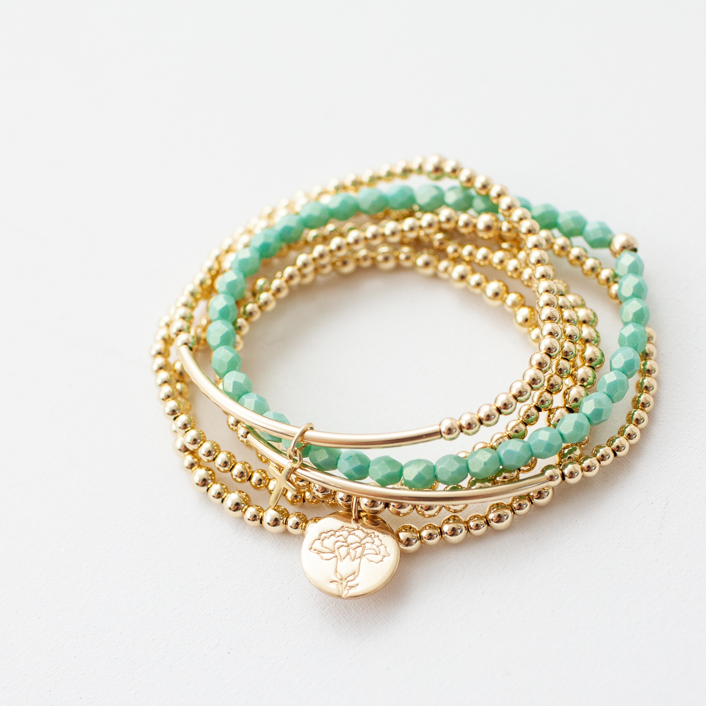 Gold Filled Beaded Bracelet with Birth Month Flower