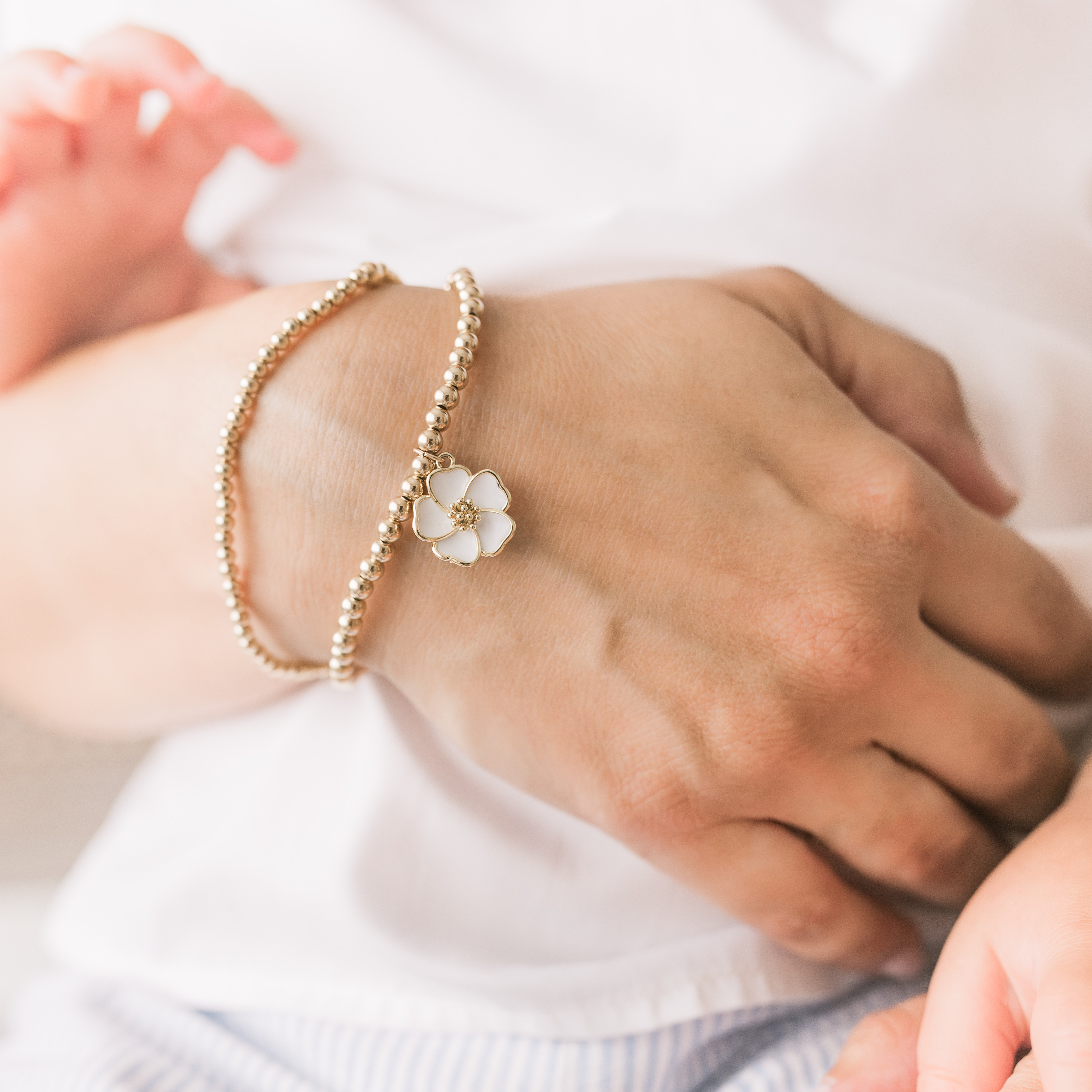 This stretchy bracelet is made with all gold filled 4mm beads and a gold filled enamel hibiscus flower in purple, white, black,blue or green. It’s the perfect gift for yourself or for you and your besties, you and your sisters, you and your mom, you and your sisters, your kids’ favorite everyone will love this bracelet.