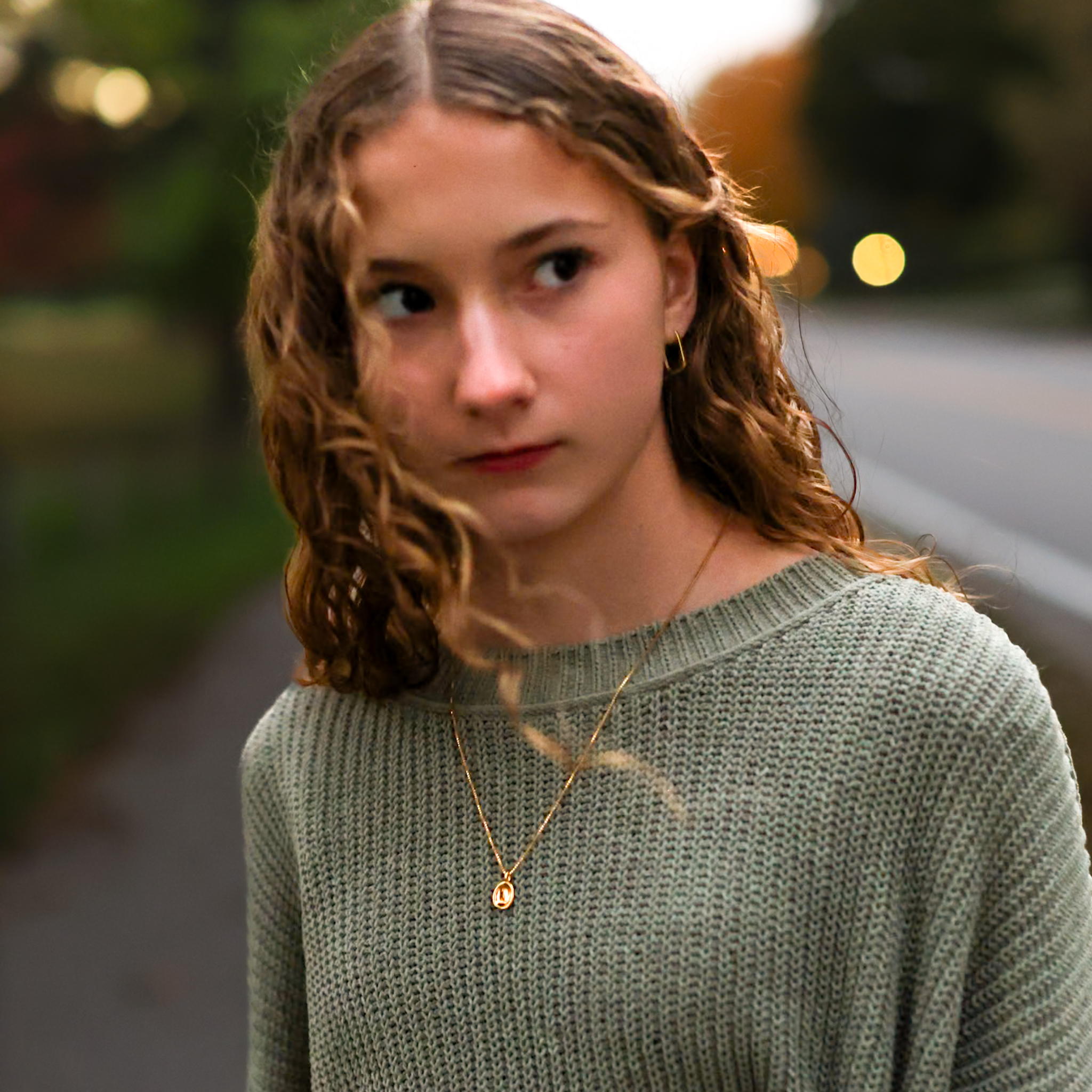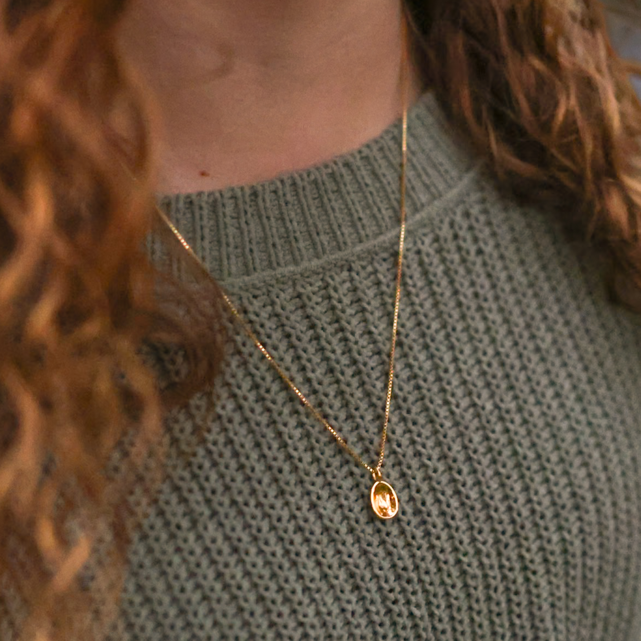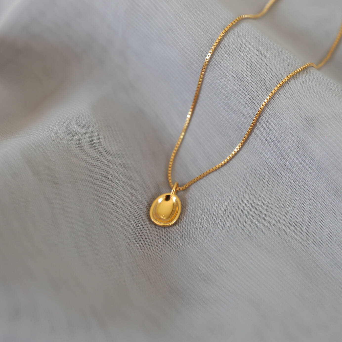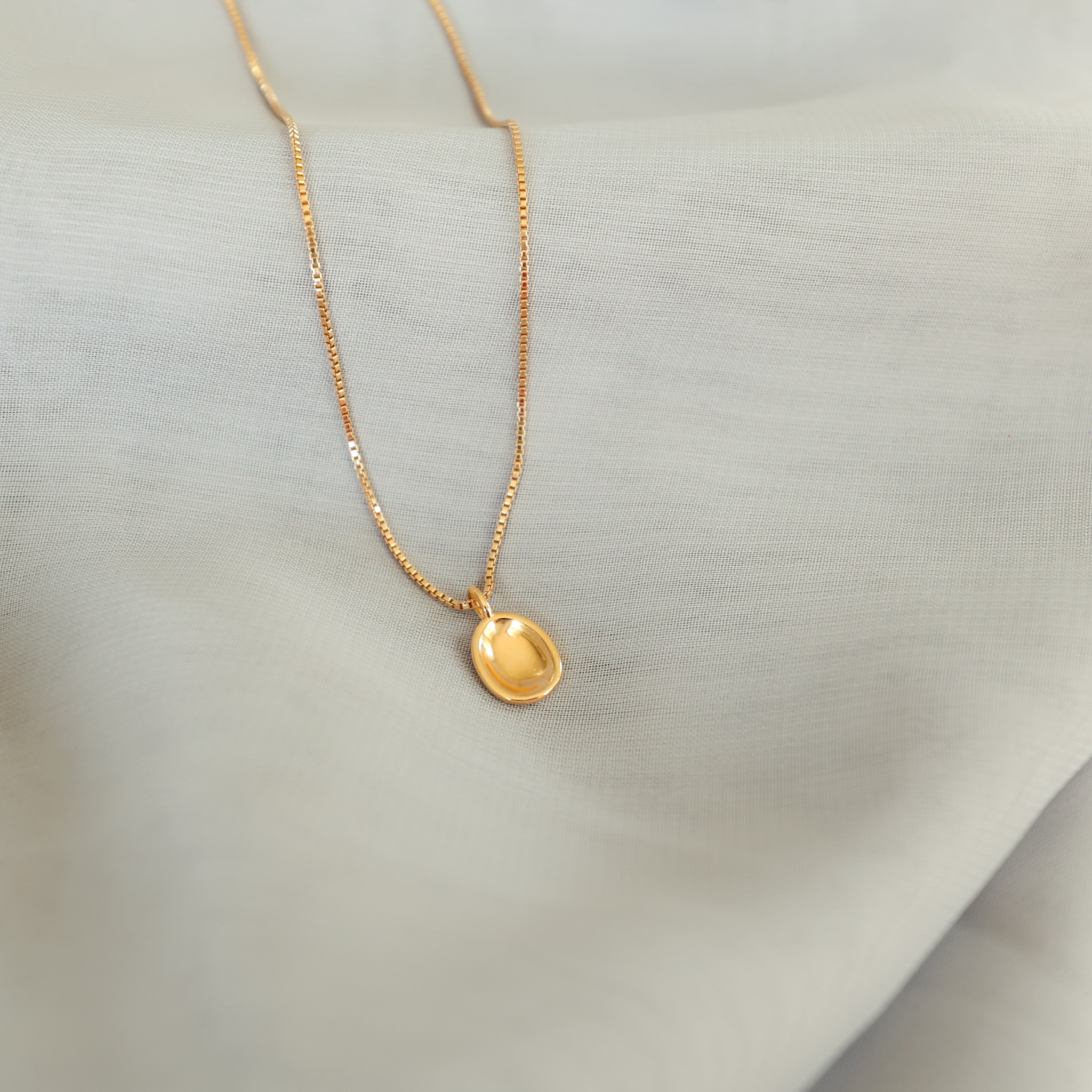 Pair this charm with one of our chains. Pro tip: this is most popular on the box chain and the rolo chains in 18 inches.