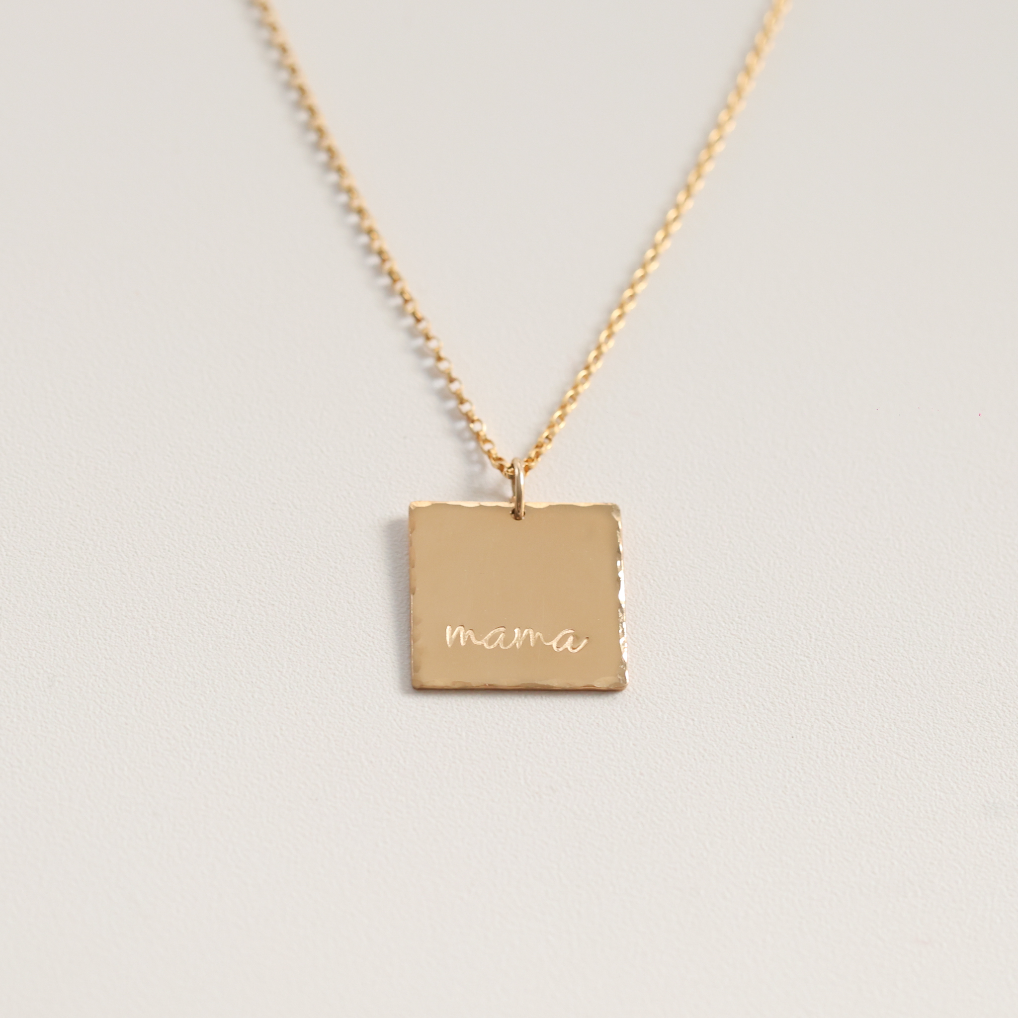 Celebrate a special mama in your life or celebrate yourself with our simple cursive mama square necklace on a thick 16mm square. This necklace is the perfect size to layer with our other necklaces or your favorite necklace, but also perfect for wearing by itself.